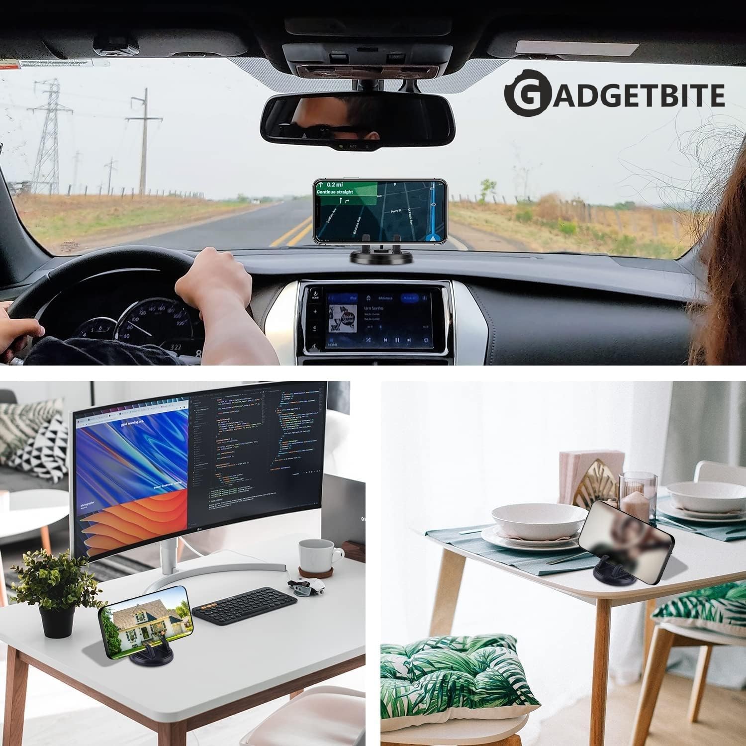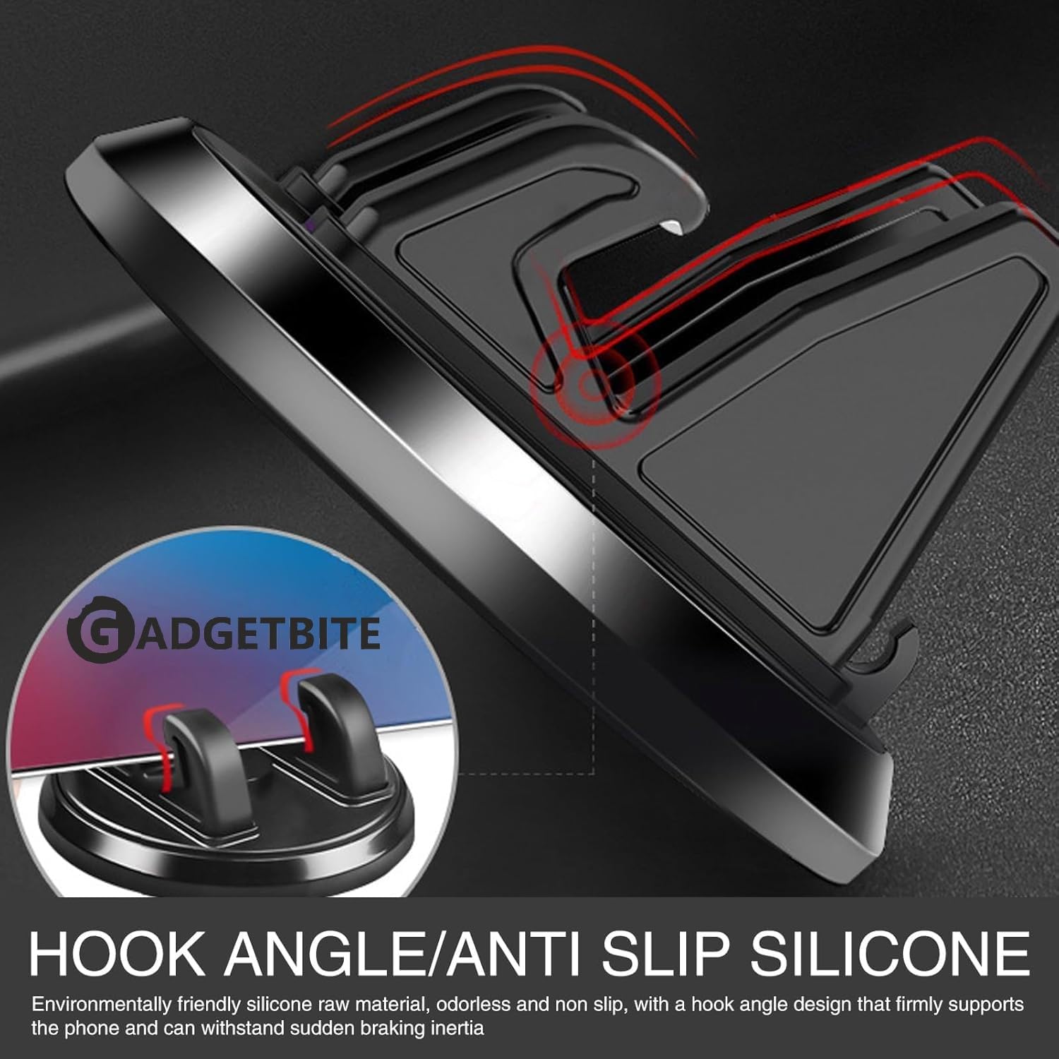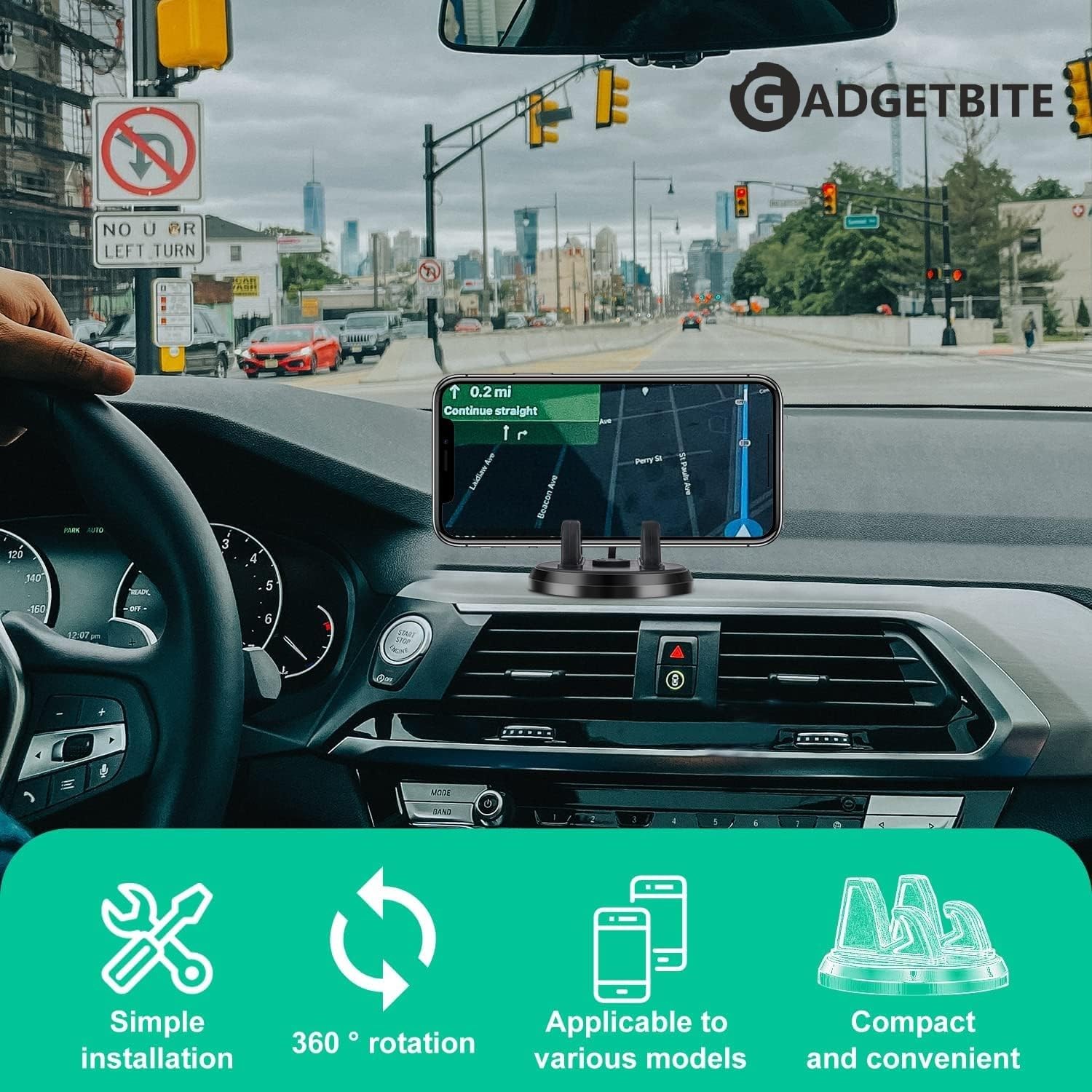 The Gadgetbite Universal Phone Holder is a must-have accessory for any car, offering a reliable and secure way to keep your smartphone in place while driving. Designed with convenience in mind, this phone holder features a sturdy 360° rotatable design, allowing you to easily adjust your phone to the perfect viewing angle. Whether you’re using GPS, taking hands-free calls, or simply listening to music, the adjustable rotation ensures you have an optimal view at all times, providing a safer driving experience.Constructed with high-quality materials, the Gadgetbite phone holder guarantees durability and long-lasting performance. The anti-slip silicone mount ensures a firm grip on your dashboard, preventing the holder from sliding or falling off, even on bumpy roads. The silicone base also protects your phone from scratches or damage while keeping it securely in place during your drive.