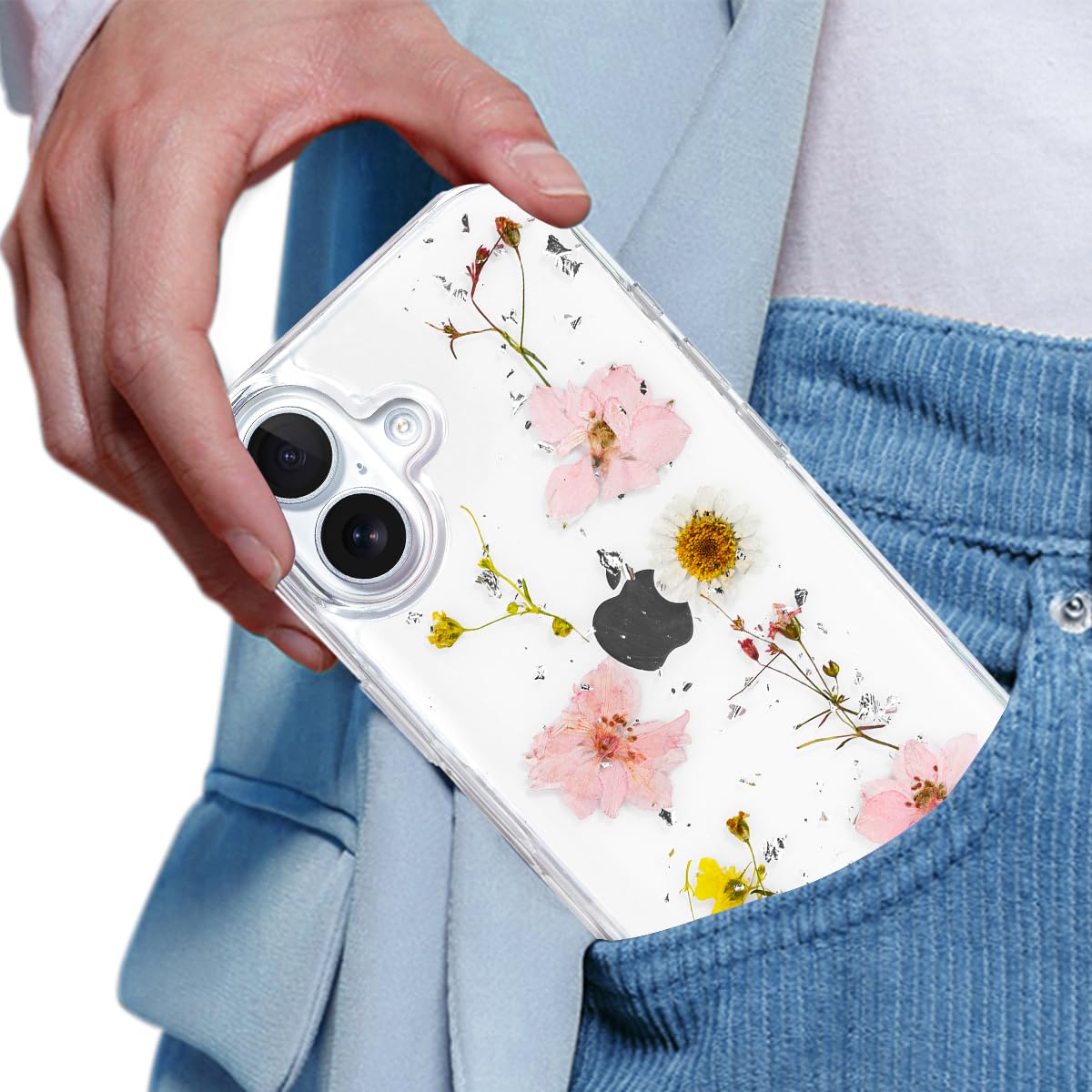 PREMIUM DESIGN: Hand made case phone case with dry pressed flowers in it. The flowers are natural that hold their fancy color as they are dried and pressed. They are placed on the back of the phone case and sealed.