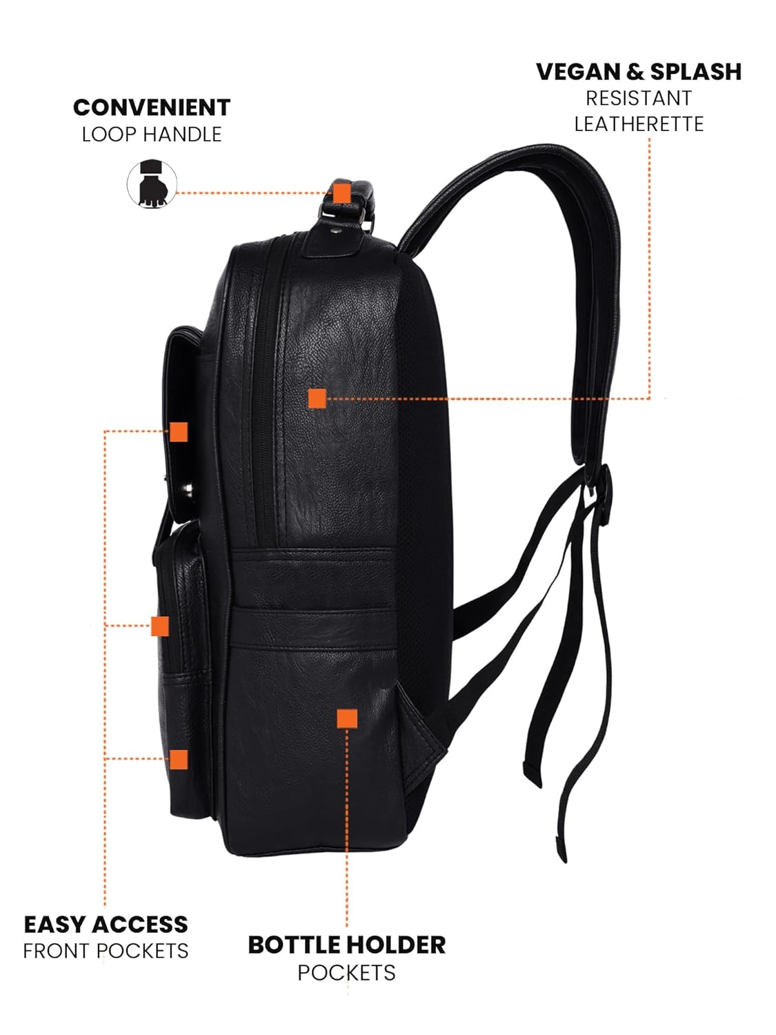 Introducing our Vegan Leather Stylish Laptop Backpack, a perfect blend of fashion and functionality. Crafted from high-quality vegan leather, this backpack not only makes a style statement but also prioritizes sustainability. The sleek design and attention to detail make it an ideal companion for modern professionals and trendsetters. Key Features: Premium Vegan Leather: Made from durable and eco-friendly vegan leather, this backpack is a guilt-free fashion choice. 15.6 Inch Laptop Compartment: Safely carry and protect your laptop with a dedicated compartment designed to fit up to a 15.6-inch laptop. Multiple Compartments: Stay organized with multiple compartments and pockets for efficient storage. Easily access your essentials and keep everything in its place. Smart Organization: The backpack features various smaller pockets for items like pens, keys, smartphones, and more, ensuring easy access and quick retrieval. Comfortable to Carry: Padded shoulder straps provide comfort during extended wear, while the back panel is designed for breathability, making it suitable for long commutes or travel. Stylish Design: The sleek and modern design of the backpack adds a touch of sophistication to your everyday look. Perfect for work, travel, or casual outings. Top Handle: Carry the backpack conveniently with the sturdy top handle, giving you an alternative carrying option. Durable Construction: Built to withstand the demands of daily use, this backpack is crafted with durability in mind, ensuring it accompanies you through various adventures. Versatile Usage: Whether you’re a professional heading to the office or a student on campus, this backpack is versatile enough to meet your daily needs. Invest in a backpack that complements your style while offering the functionality required for your on-the-go lifestyle. Elevate your daily carry with our Vegan Leather Stylish Laptop Backpack.