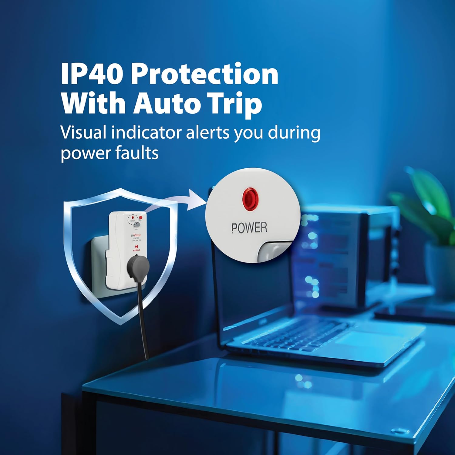Auto Trip Safety Feature: Smartly constructed to sense leakage current, this 16 A PRCD Adaptor trips automatically to cut off power. This precaution eliminates the risk of electric shock, short circuiting, and fire, particularly during power fluctuations.