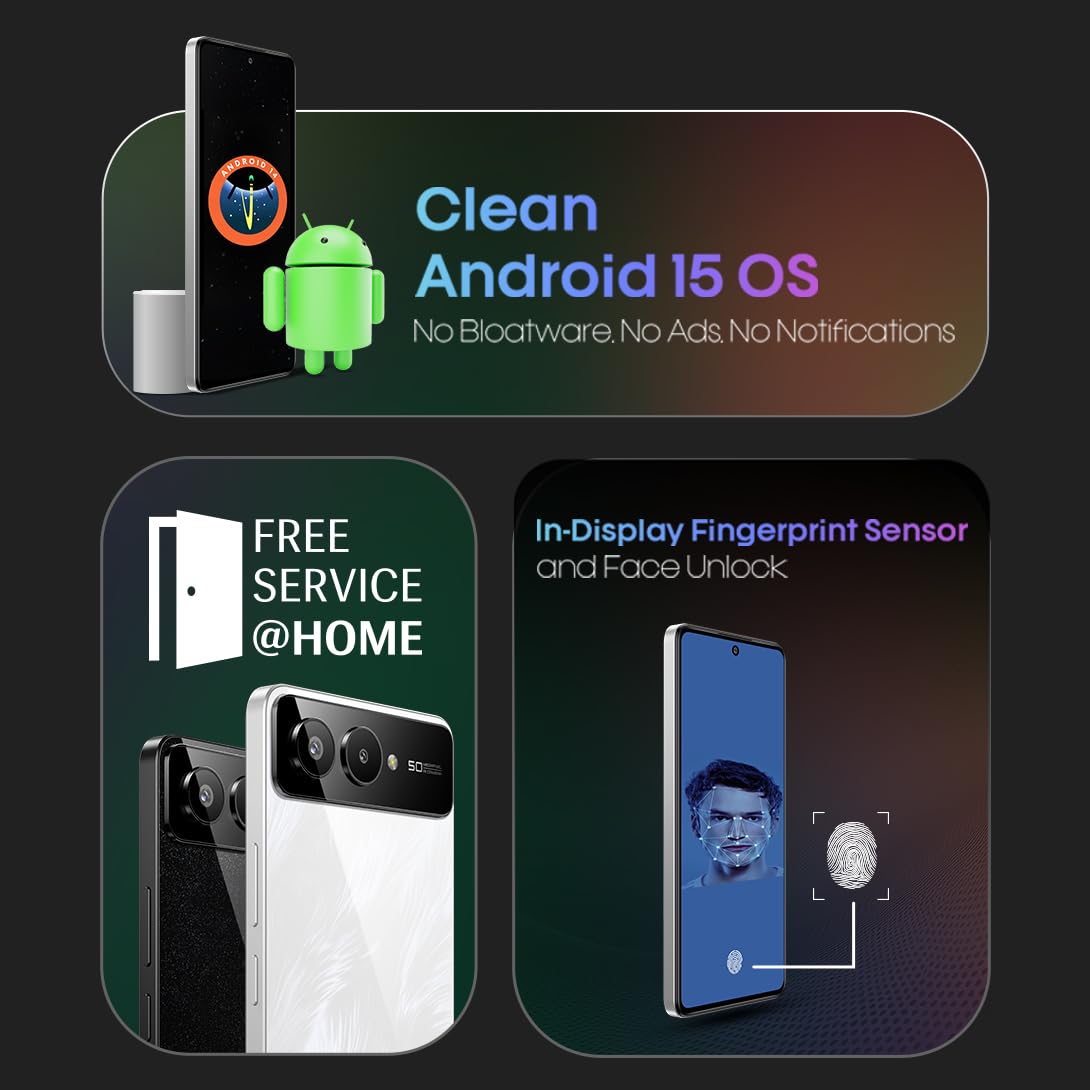 Clean Android 15 OS with Seamless Unlocking: Experience the latest Android 15 in its purest form – no bloatware, no ads, no clutter. Paired with In-Display Fingerprint Sensor and Face Unlock, enjoy a fast, secure, and effortlessly smooth smartphone experience.