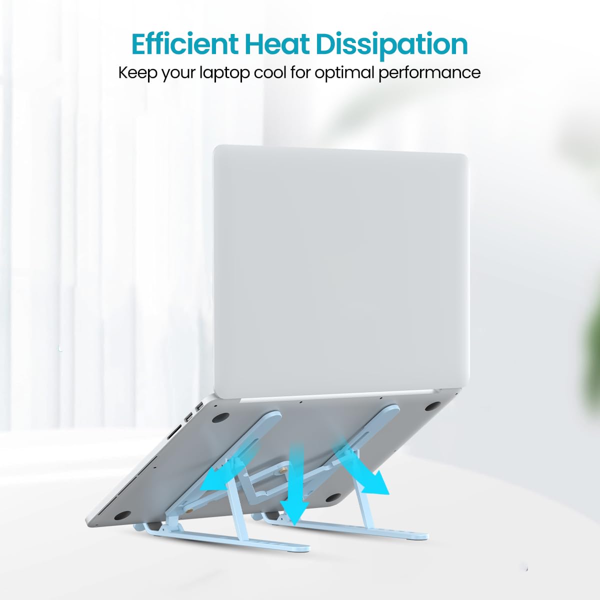 Improved Air Flow: The laptop stand features an open design, to allow adequate airflow for efficient heat dissipation. Prevent overheating during intensive tasks, ensuring optimal performance and extended lifespan for your laptop.