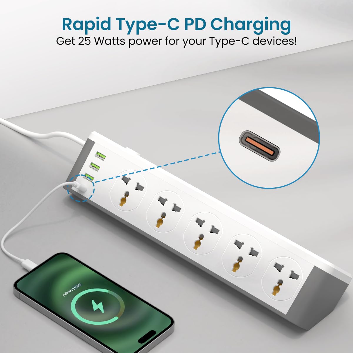 10 Socket Extension Board: The Portronics Power Plate 14 offers ample sockets to accommodate multiple devices simultaneously, providing convenience and flexibility for powering various electronics in your home or office.