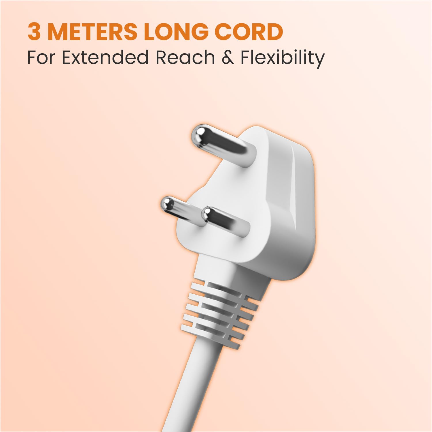 3 Meter Cord: Comes with a 3-meter long cord, providing flexibility and convenience in positioning your devices.