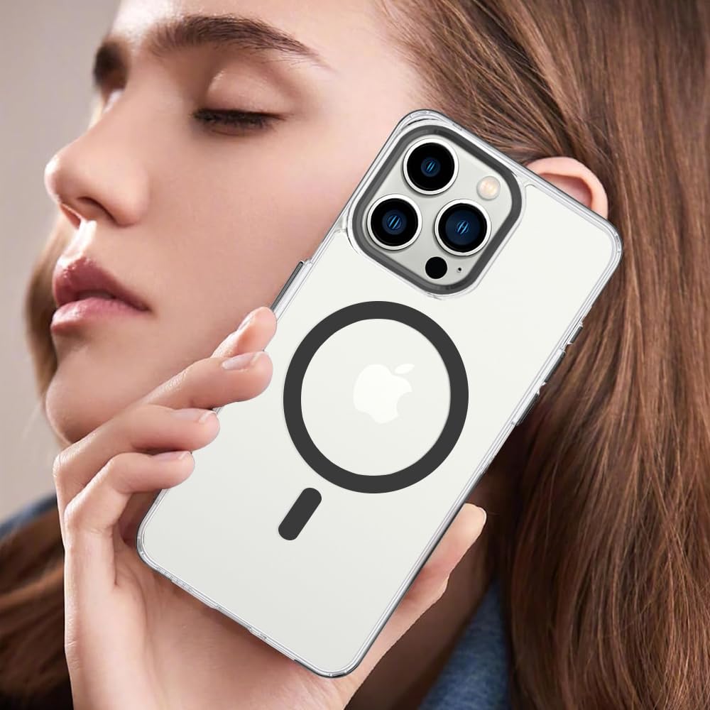 Magsafe Apple Back Cover: Crafted from Superior Quality TPU Material ; Crystal Transparent back panel with side grip and camera ring protection