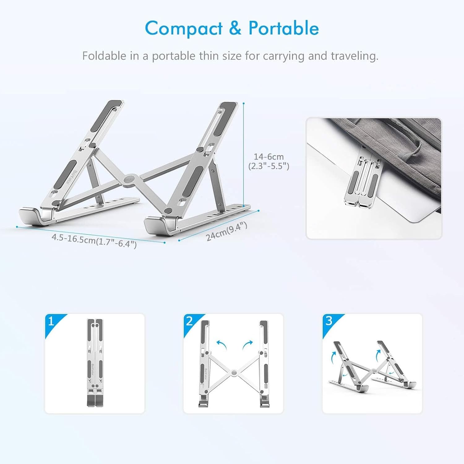 Premium Aluminum Alloy Build – Durable, sturdy, and lightweight design that supports laptops up to 17.3 inches while maintaining a stylish, modern silver finish.